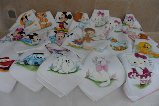 Começo por lhes dar duas demãos de primer, em seguida dou duas demãos de tinta acrílica, depois de bem seca, faço a decoupage com guardanapo, em alguns casos, utilizei o guardanapo por inteiro, e noutras só meio guardanapo, depois pintei com a tinta acrilica ao meu gosto e fiz craquelé, no final passei verniz spray.